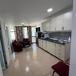 Blue Horizont Appartement heeft een complete keuken, gecomplementeerd door een magnetron en een koelkast.